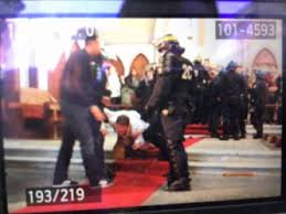 Ce matin, pendant la messe, le contenu de 15 cars de CRS s'est engouffré avec pertes et fracas dans l'église Saint Rita et en ont expulsé, manu militari les fidèles